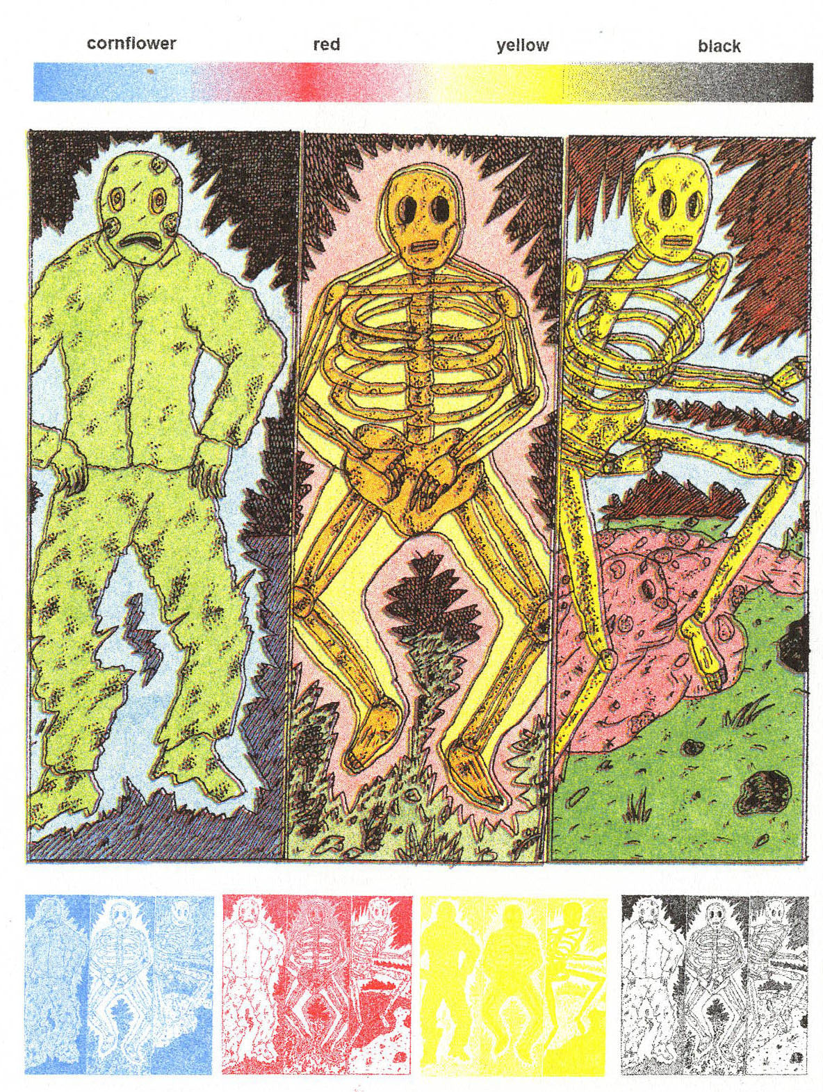 Keep in mind that Riso ink is transparent, two different colours creates a third one.